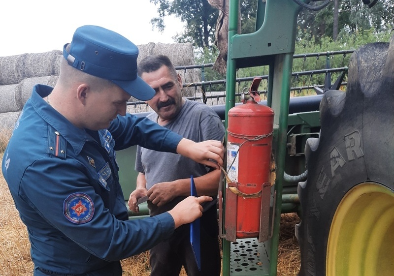 Работники РОЧС выезжают на поля, проверяют задействованную на уборочной технику, зерносушильные комплексы, мехдворы и места хранения зерна. Основное внимание обращается на наличие первичных средств пожаротушения — огнетушителей, пожарных кранов, лопат, ведер. Важно, чтобы огнетушители были исправными. Сотрудники МЧС также проверяют, знают ли работники хозяйств алгоритм действий при возникновении пожаров и иных чрезвычайных происшествий.
