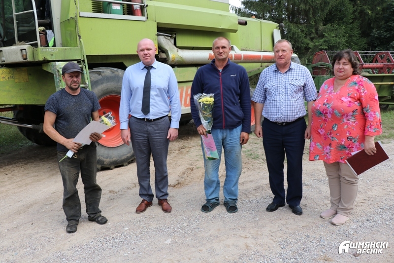 Прямо в поле они поблагодарили экипаж комбайнеров КСУП «Го