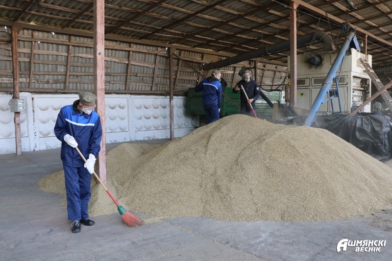 Основной объем работ в сельхозотряде заключается в доработке зерна и уборке территории – без помощи юношей здесь не обойтись. На складе работает двадцать человек, все прошли инструктаж, экипированы формой и средствами индивидуальной защиты. Владимир Томашевич учится на тракториста-механика, поэтому работа на мехдворе для него – отличная возможность ознакомиться с будущей профессией и заработать деньги на личные нужды. В минувшем году юноша уже получил первую заработную плату на зерносушилке и сейчас, несмотря на каникулы, согласился стать частью студенческого отряда.