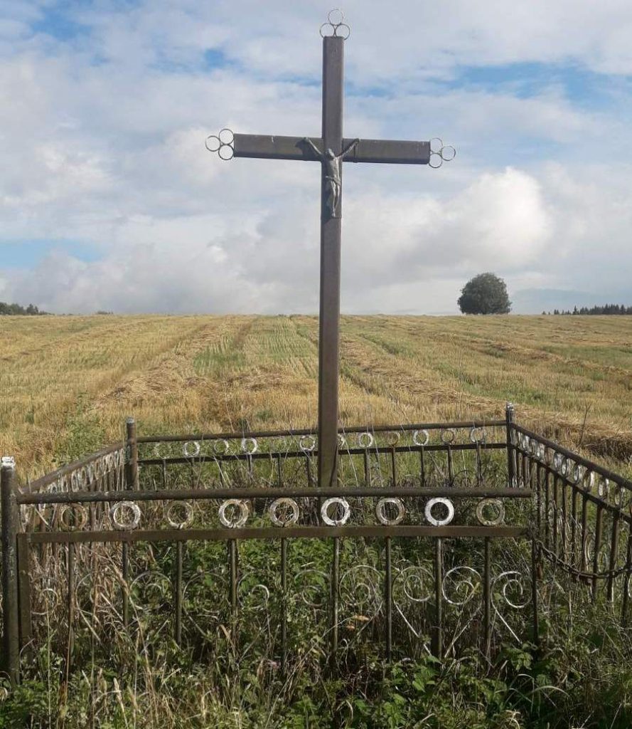 Сёння толькі старая здзічэлая каржакаватая яблыня сярод поля напамінае пра былое, ды на месцы трагедыі Франц Кандратовіч усталяваў жалезны крыж.