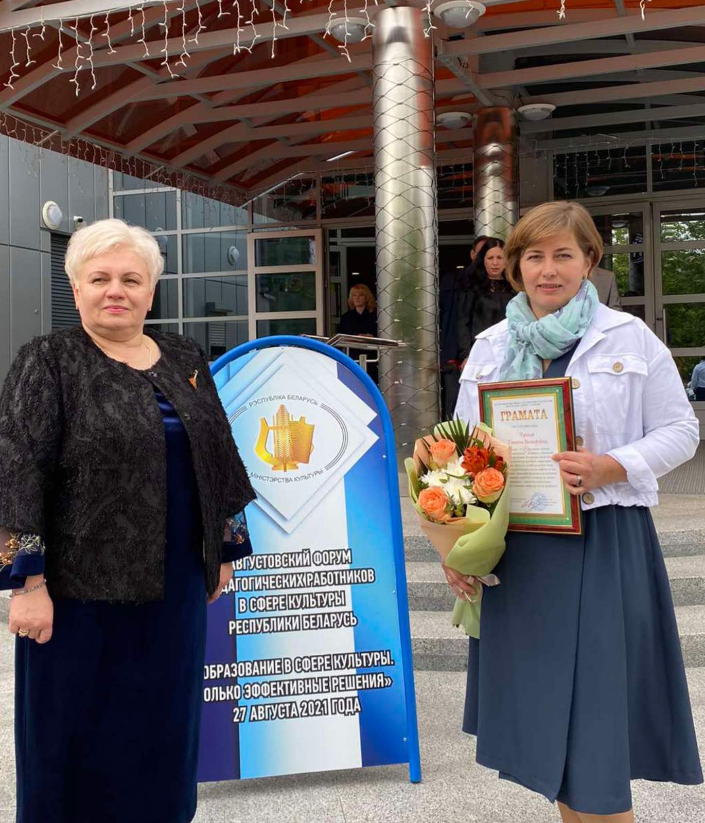 Лучшие педагоги страны были отмечены грамотами республиканского уровня. Наша землячка Татьяна Черская за добросовестный труд, высокий профессионализм, значительный личный вклад в развитие и пропаганду белорусского профессионального искусства награждена грамотой Белорусского профсоюза работников культуры, информации, спорта и туризма.