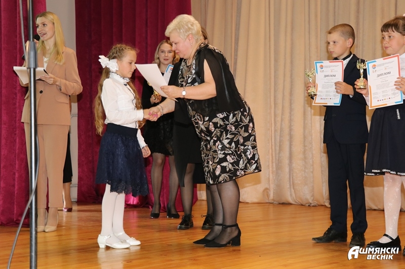 Дружными аплодисментами встречал зал первоклассников. Директор школы, она же председатель первичной организации «Белая Русь» отдела идеологической работы, культуры и по делам молодежи, вручила новым ученикам блокноты и нотные тетради с логотипом общественного объединения. Школа искусств активно сотрудничает с районным общественным объединением, которое возглавляет Наталья Иосифовна Станкевич, по инициативе которой на базе школы был проведен региональный художественный пленэр «Малюем гісторыю разам», посвященный 680-летию Ошмян.