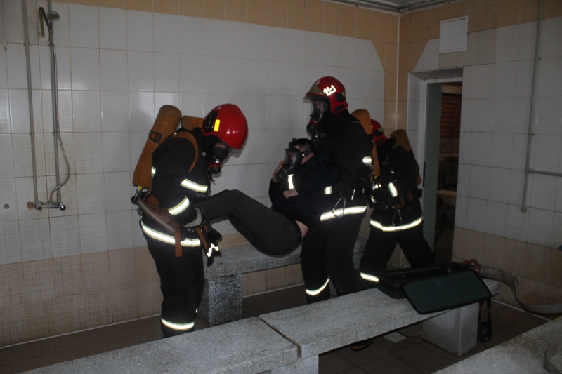 По словам старшего инспектора сектора пропаганды и взаимодействия с общественностью Ошмянского РОЧС Михаила Марковского, такие учения прошли на базе городской бани РУП ЖКХ. Согласно тактическому замыслу мероприятия, в результате перекала отопительной печи произошло возгорание потолочного перекрытия бани с распространением огня в парильное помещение, где находится в бессознательном состоянии человек.