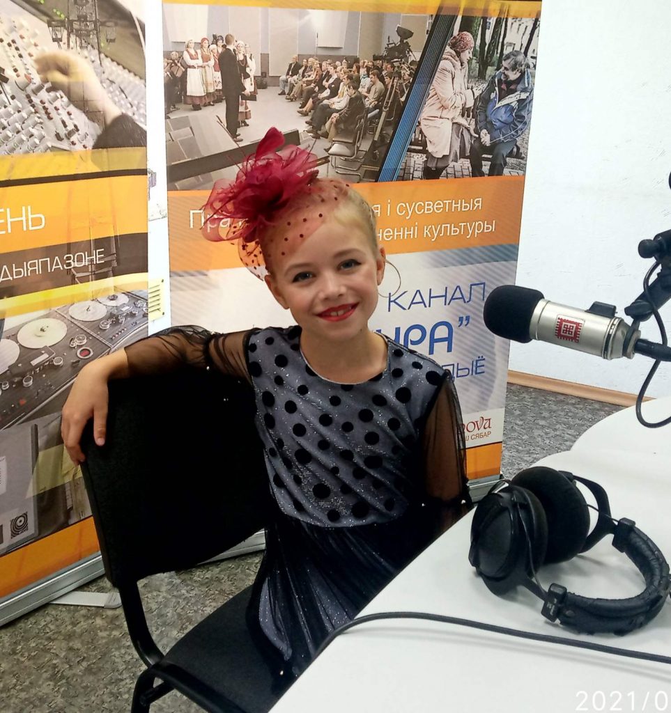 На радыё дэкламатар Ева выступіла разам са сваёй настаўніцай Вольгай Чаплінскай і арганізатарам праекта ART EXPRESS Вольгай Палёхінай. У прамым эфіры дзяўчынка расказала аб першых кроках у творчасць, падрыхтоўцы да конкурсаў і прачытала верш “На кого же я похожа?”, з якім скарыла не адну міжнародную сцэну.