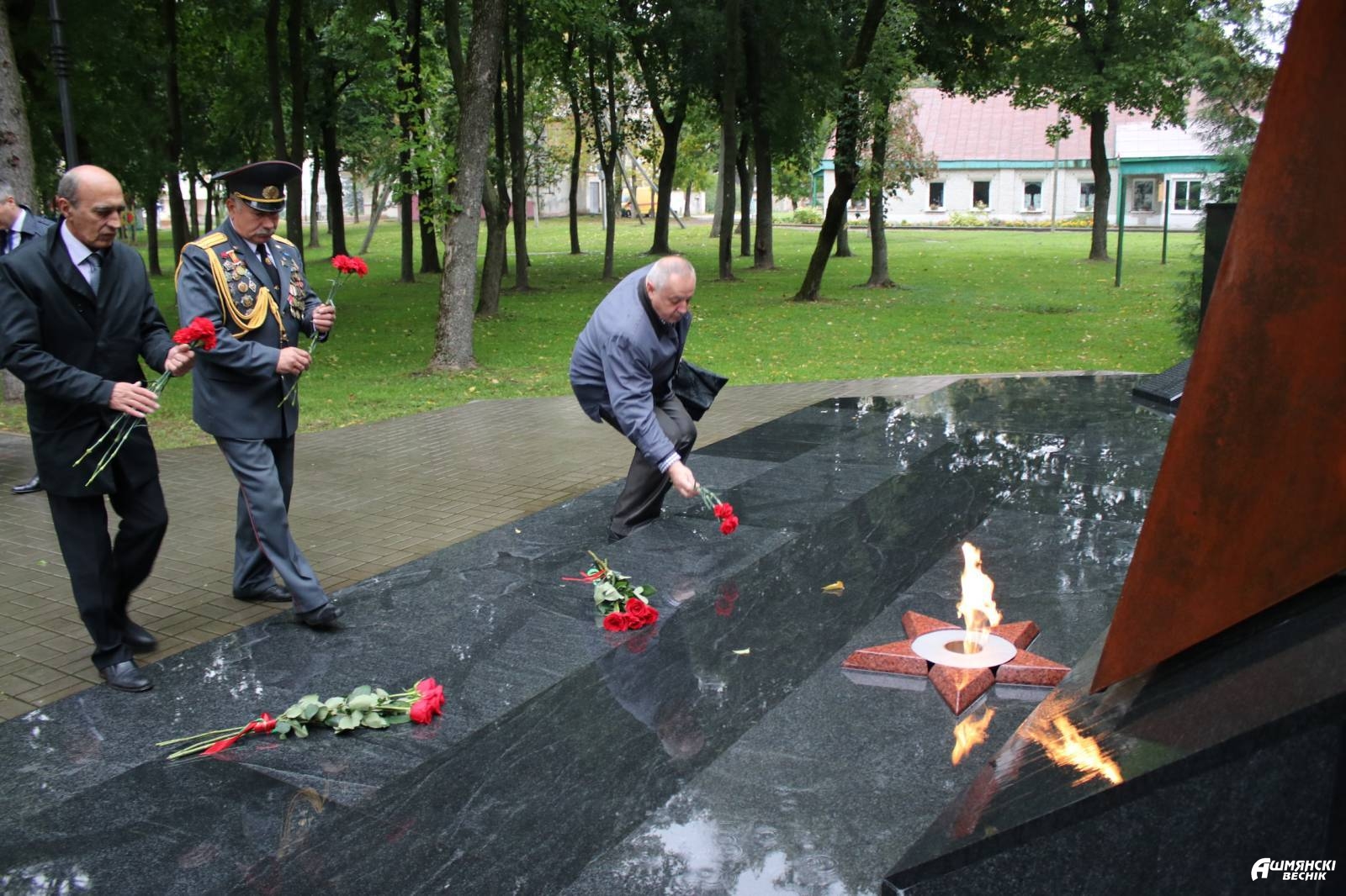 Урачыстае ўскладанне кветак, як знак таго, што мы памятаем тых, хто не вярнуўся на радзіму, але жыве ў сэрцах ашмянцаў!