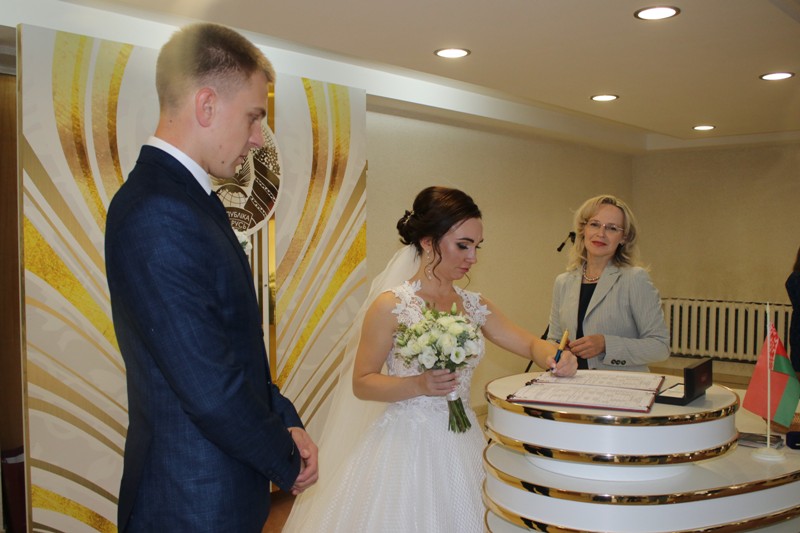 Необычным стал день создания семьи для уроженца Гольшан Павла Гайдановича и Виктории Коншиной из Белынич – свой брак они зарегистрировали в Ошмянском отделе ЗАГС в день юбилея города.
