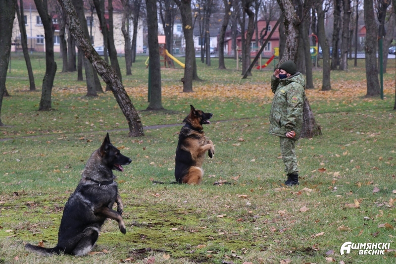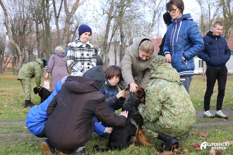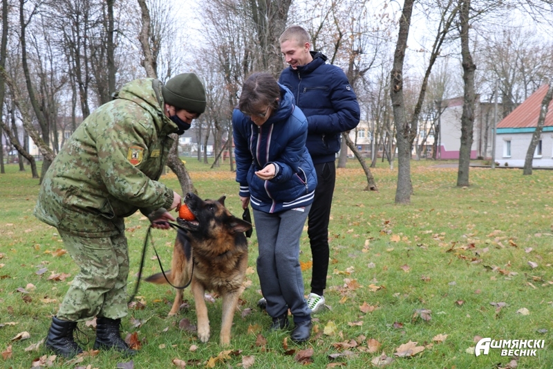 Сотрудники кинологического центра Сморгонской пограничной группы посетили отделение дневного пребывания для инвалидов ТЦСОН Ошмянского района. В городском парке людей с ограниченными возможностями встречали заместитель начальника центра Дмитрий Демко, опытные специалисты Наталья Бохан, Елена Петрик, Наталья Чимбур и Екатерина Апанович вместе со своими подопечными Памеллой, Тионой, Патриком и Гермионой.