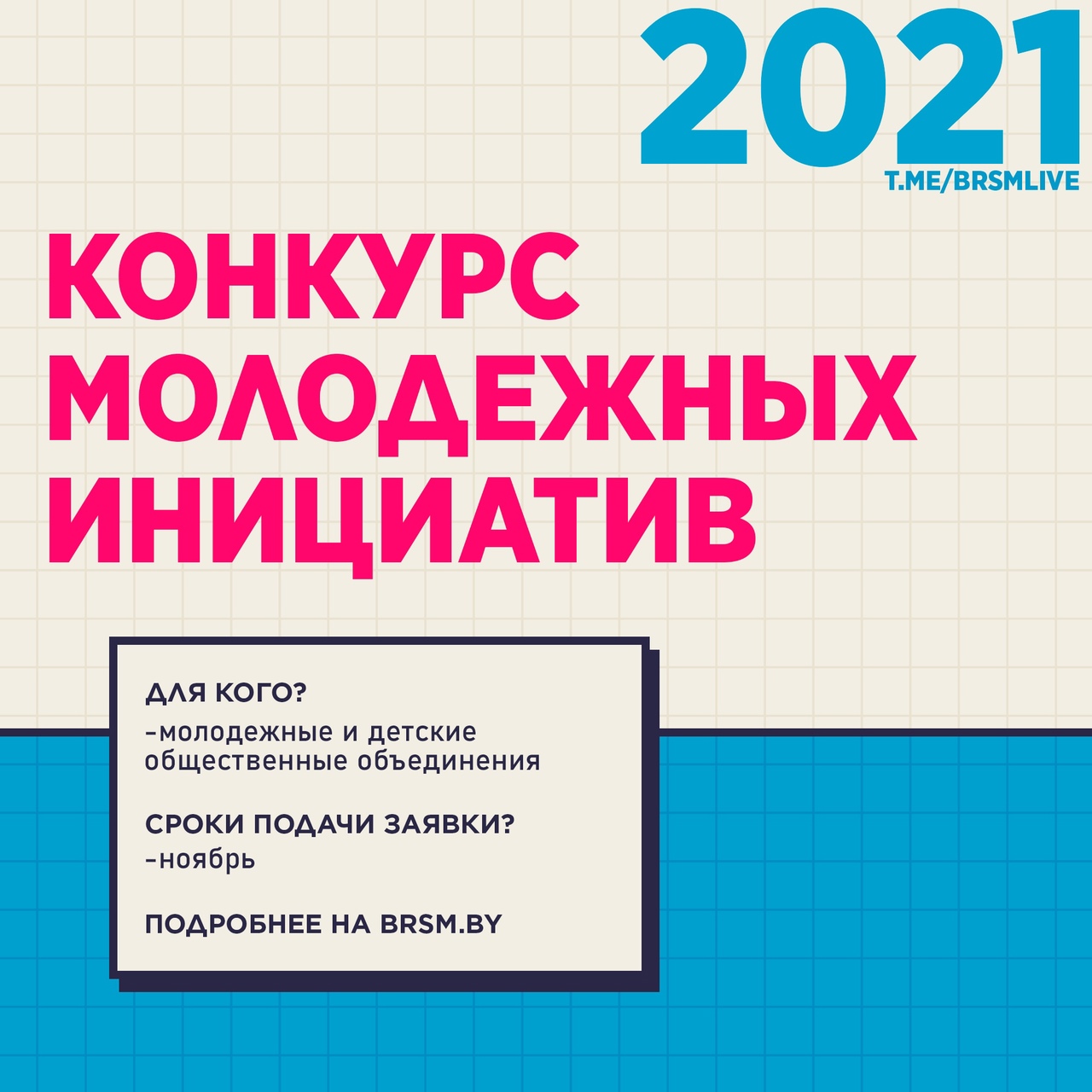 На конкурс принимаются проекты, направленные на вовлечение молодежи в творческую деятельность и социальную практику, раскрытие потенциала молодежи в соответствии с основными приоритетами Стратегии развития государственной молодежной политики Республики Беларусь до 2030 года.