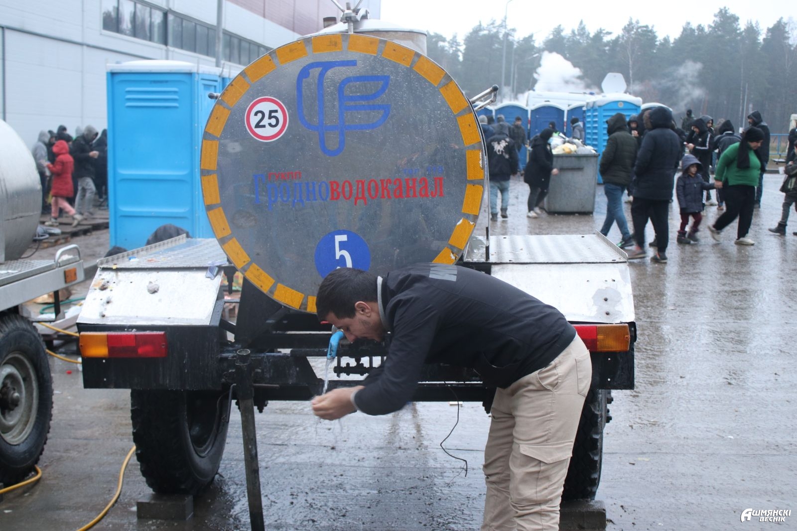 На прилегающей территории для мигрантов обустроили необходимую инфраструктуру: коммунальные службы установили два десятка биотуалетов и мусорные контейнеры, «Гродноводоканал» периодически заполняет две цистерны с питьевой водой, а военные организовали полевую кухню. Они же разбили три палатки для раздачи еды и гуманитарной помощи.