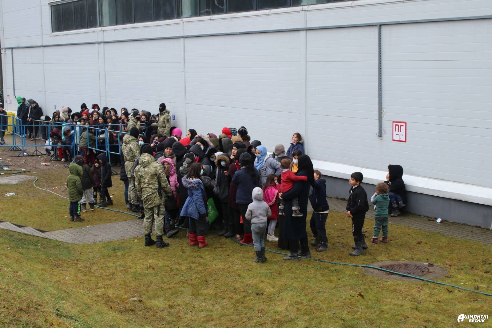 Условия для беженцев в центре, безусловно, в разы лучше, чем в стихийном лагере на границе: тут есть полноценное укрытие от непогоды и мороза — температура внутри помещения, по ощущениям, около +20 0С, — люди теперь спят не на холодной земле, как раньше, а на деревянных поддонах и матрасах, из которых получилось подобие кроватей. Однако самое страшное — это то, что до сих пор непонятно, что же будет со всеми этими людьми.