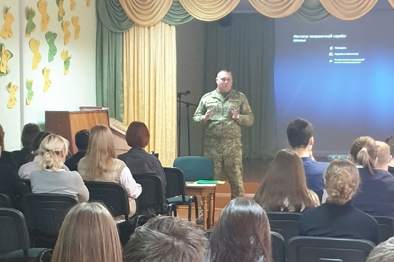 В актовом зале СШ № 3 состоялась встреча старшеклассников с сотрудниками Сморгонской пограничной группы. О пограничных буднях, службе на границе, выборе профессии рассказали офицер отдела боевой подготовки Алексей Марнопольский и офицер-психолог Наталья Пекер.