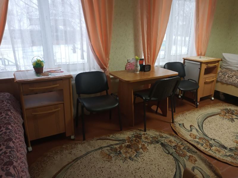Наши постояльцы живут в уютных условиях, максимально приближенных к домашним. В комнатах имеется необходимый набор мебели. Граждане обеспечены четырехразовым питанием и доврачебной медицинской помощью. При необходимости наши работники оказывают помощь в выполнении санитарно-гигиенических процедур. Скрашивать пребывание в отделении помогают культурно-массовые мероприятия. Частые гости у нас работники культуры, ученики местной школы и воспитанники детского сада.