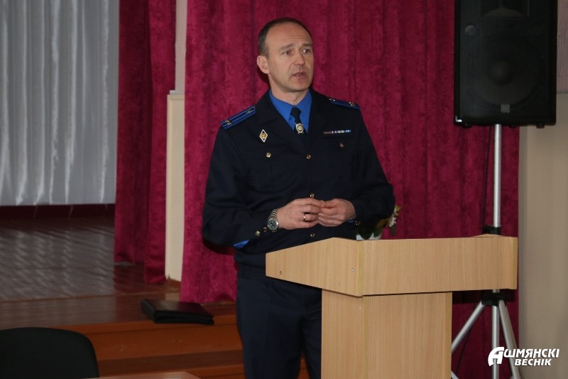 На встречу со школьниками, которая состоялась в гимназии №1, пришли главный инспектор управления кадров и идеологической работы управления Следственного комитета Беларуси по Гродненской области Михаил Карканица и начальник районного отдела Следственного комитета Виктор Мацевич.