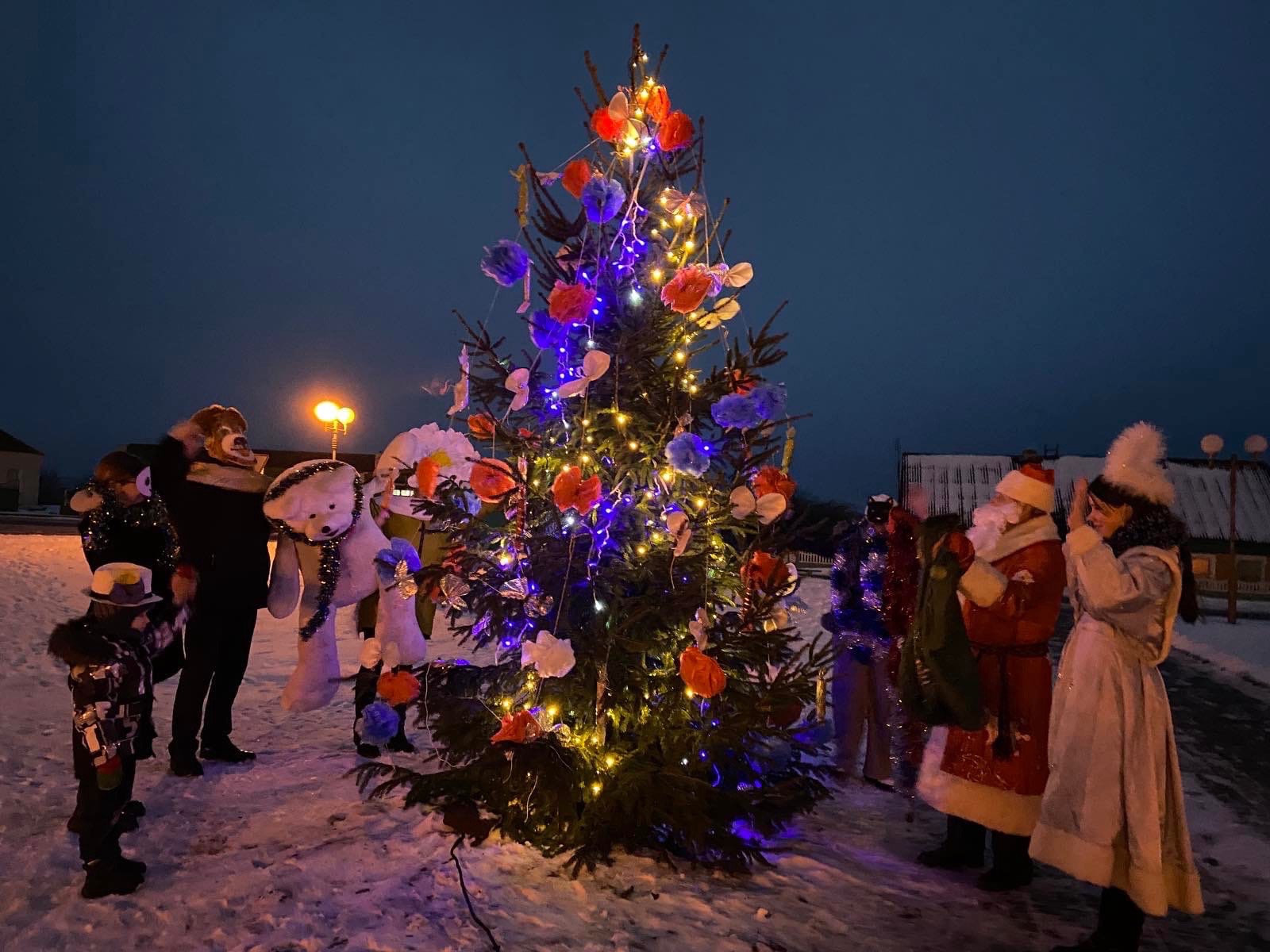 Вместе с главной елкой города, на которой торжественно зажглись вчера новогодние гирлянды, засияли разноцветными огоньками лесные красавицы в сельской местности – у зданий сельисполкомов и Домов культуры. По доброй традиции этот повод разделил с местными жителями Дед Мороз со Снегурочкой, а также другие сказочные персонажи, в роли которых выступили работники сельских учреждений культуры. Хороводами, новогодними песнями и играми приветствовала главный атрибут приближающихся праздников местная детвора.