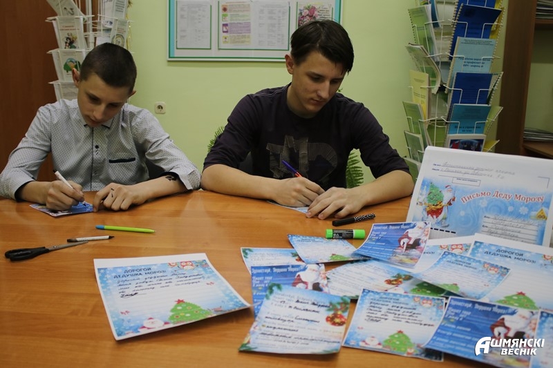 Сейчас в приюте Ошмянского района находятся двенадцать ребят: девять мальчиков и три девочки. Мы попросили у них написать свои письма Деду Морозу и пообещали передать их ему лично в руки. К сожалению, застать всех детей вместе у нас не получилось – некоторые из них сейчас находятся в больнице, но воспитатели связались с ребятами и передали нам их пожелания: