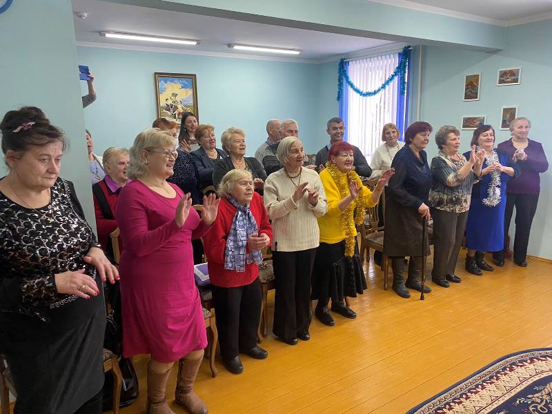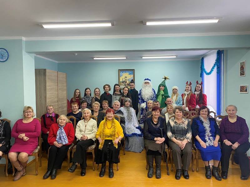 Громкими аплодисментами с неподдельным детским восторгом пожилые люди встречали Деда Мороза (Илья Сасновский) и Снегурочку (Жанна Грамбовская), а также волшебных оленей (Виктория Климченко и Ангелина Юхевич).