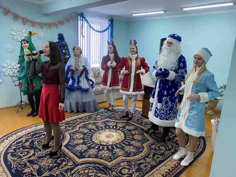 Привычные гитара и фортепиано в этот день звучали как-то по-особому волшебно, а добрые слова пожеланий радовали всех присутствующих без исключения. В завершение мероприятия посетители отделения вместе с новогодними героями приняли участие в зажигательном танцевальном флешмобе.