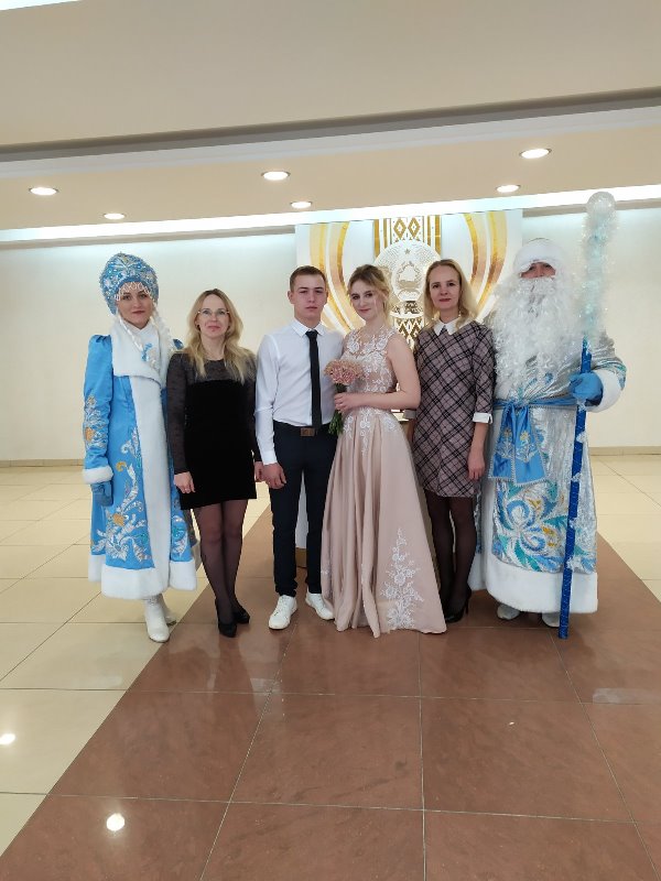 В отделе ЗАГС Ошмянского райисполкома 31.12.2021 г. четыре пары решили завершить год созданием семьи. Илья и Виктория, Дмитрий и Оксана, Сергей и Виктория, Валентин и Виолетта связали себя узами брака и вошли в новый, 2022 год в новом статусе – статусе супругов.