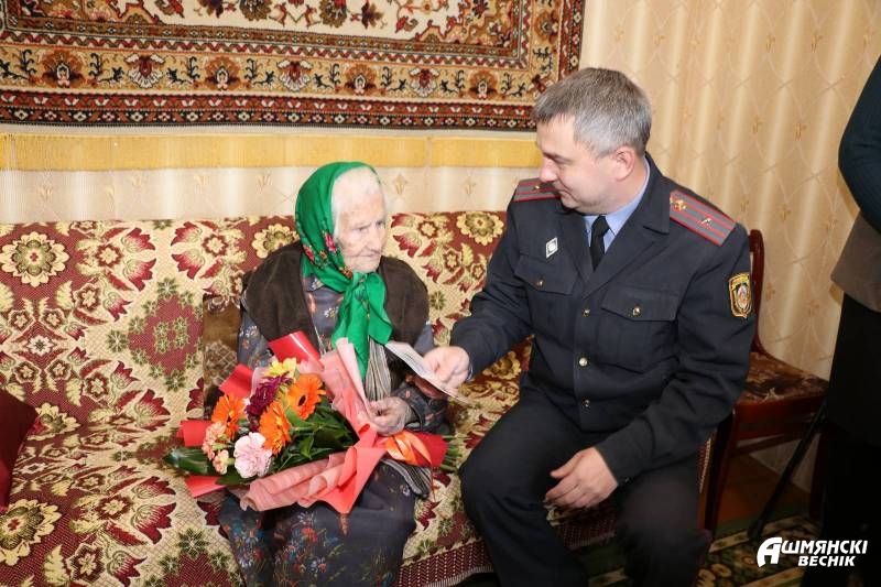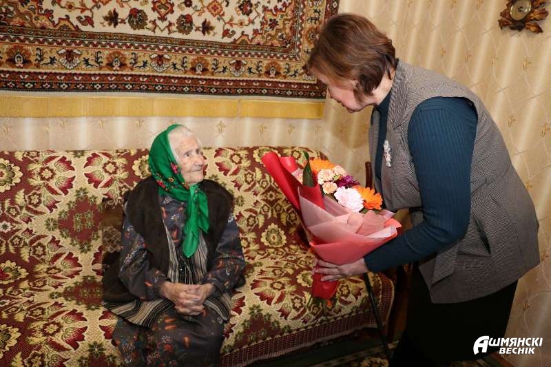 У двадцаць шосты студзеньскі дзень жанчына пачула шмат цёплых слоў і пажаданняў ад адказнага сакратара райсавета ветэранаў Галіны Яшынай і дырэктара ТЦСАН Ашмянскага раёна Ліліі Невяркевіч. Вершаванымі радкамі і звонкімі галасамі напоўнілі дом імянінніцы пажылыя валанцёры Ганна Грышан і Галіна Грэсь, а таксама супрацоўніца аддзялення дзённага знаходжання для грамадзян пажылога ўзросту ТЦСАН Людміла Барабанава.