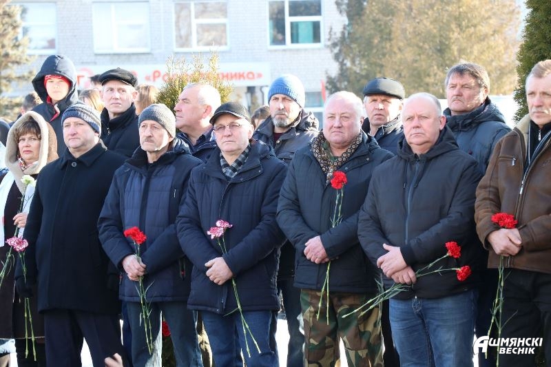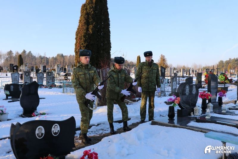 Торжественному мероприятию предшествовало возложение цветов к могилам воинов-афганцев — Сергея Золотарёва, Эдуарда Кедо и Сергея Клинцевича. Трое солдат из нашего района в числе более 600 белорусов вернулись с той войны в цинковых гробах. В глубоком молчании стояли воины-афганцы, представители райисполкома, военкомата, общественных объединений у могил, где покоятся наши земляки. Их память почтили минутой молчания, а бойцы почетного караула выпустили залпы торжественного салюта в честь погибших земляков.