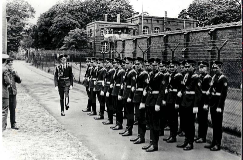 — Охрана — 100 человек — военнослужащие СССР, Англии, Франции, США. Девять караульных вышек, где мы с автоматами несли службу помесячно. Месяц охраняло наше воинское подразделение, месяц — американцы, месяц — англичане и месяц — французы. Я имею в виду наружную охрану. А внутри, на каждом этаже были надзиратели, также представители четырех государств-союзников. Тюрьмой управляли 4 администрации союзников, также сменявшие друг друга поочередно каждый месяц. До сих пор у меня перед глазами — здание тюрьмы из красного кирпича, оснащенное несколькими видами защиты и сигнализации, территория с электроизгородью, забор с колючей проволокой, тюремный дворик и сад, где прогуливались заключенные.