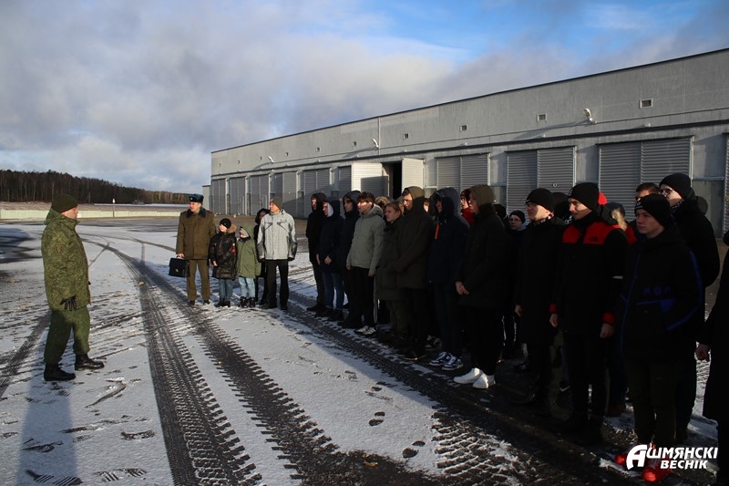 Первой остановкой в экскурсионном дне стал военный городок для полка, который с воздуха защищает Белорусскую атомную электростанцию. Именно там расположена войсковая часть 97106, примечательная своим вооружением: полк первым в Беларуси вооружен зенитно-ракетным комплексом ПВО «Тор-М2», который может бороться с баллистическими воздушными целями и крылатыми ракетами на различных высотах. Школьникам частично было продемонстрировано техническое оснащение части. С большим интересом молодые люди рассматривали огромные боевые автомобили, которые чередой проезжали мимо них. Пожалуй, именно эта часть дня стала одной из самых ярких, по мнению одиннадцатиклассников.