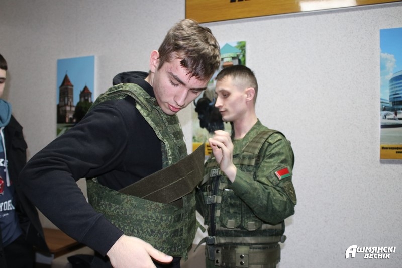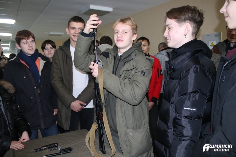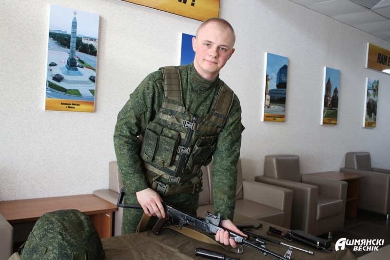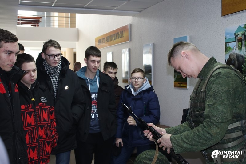 — Часть новая, полностью всем обеспечена, — рассказывает Ярослав. – Руководство хорошее. Еще одно преимущество – рядом с домом, до Ошмян от Ворнян – чуть больше двадцати километров. Что для многих важно — голодным никто не остается, организовано трехразовое питание, кухня гражданская – готовят повара, поэтому жаловаться точно не на что, — говорит парень и берется за объяснение школьникам устройства оружия.