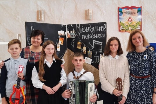 В средней школе №2 г. Ошмяны прошла декада гуманитарных наук. Решено было начать ее с проекта «Музыкальные перемены». Фойе школы превратилось в открытую площадку для выступлений. Педагоги истории поработали над созданием антуража: в импровизированной экспозиции заняли свои места музыкальные экспонаты школьного краеведческого музея «Ошмяны: события, люди», современные музыкальные инструменты. Ребята принесли свои рисунки и организовали выставку, а учителя подобрали к каждому рисунку музыку, которую можно было послушать, используя QR-код. Авторам было интересно послушать, как же может звучать их рисунок.