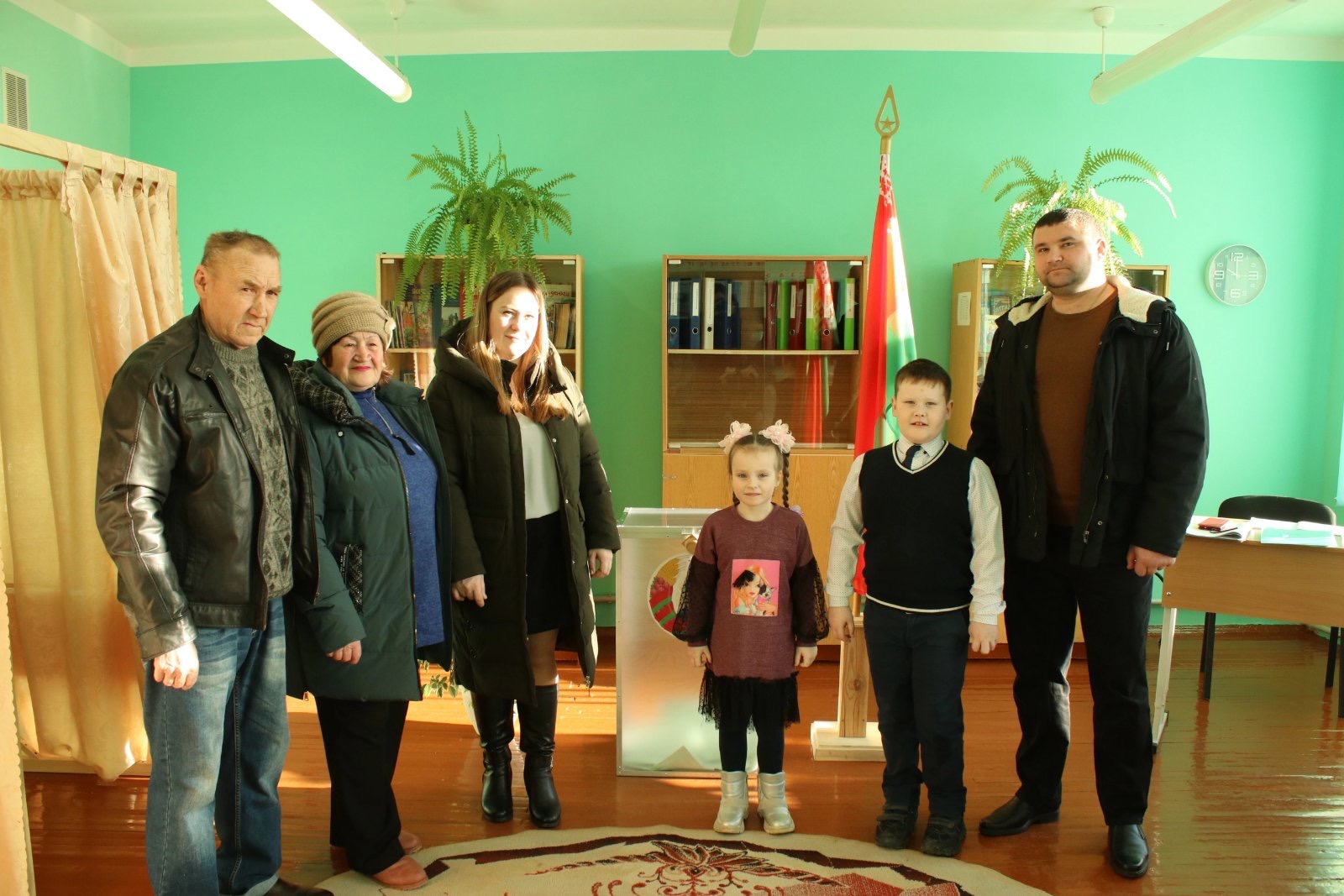 Дружна, усёй сям’ёй, завіталі на ўчастак Наталля і Віктар Амбражэвіч разам з дзеткамі Вікторыяй і Дзмітрыем, а таксама з бацькамі Наталлі. З радасцю і вялікай адказнасцю малечы дапамагалі бацькам і дзядулі з бабуляй выконваць грамадзянскі абавязак – апускалі запоўненыя бюлетэні.