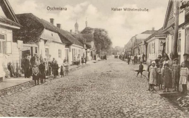 Улица Советская в Ошмянах. В свое время называлась Жупранская, Кайзер Вильгельмштрассе, Желиговского, Пилсудского и Вермахтштрассе.