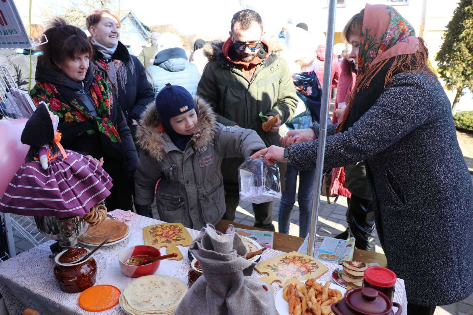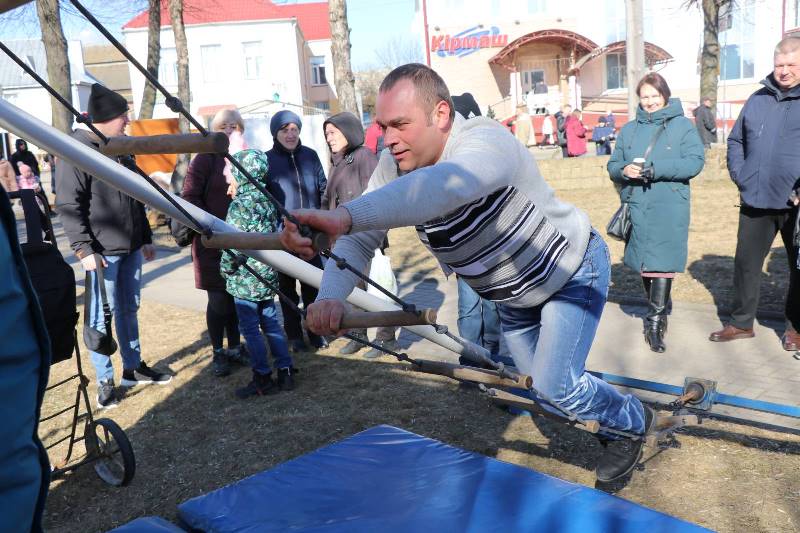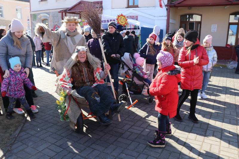 На городской площади было довольно оживленно. На площадке у краеведческого музея им. Ф. Богушевича расположились фотозоны, организованные работниками Ошмянского центра культуры, выставка изделий отдела ремесел и традиционной культуры. Ярмарку чудес с дегустацией блинов, продажей вязаных игрушек-сувениров, беспроигрышной лотереей и мастер-классом по изготовлению куклы Масленицы организовали работники районной библиотеки. Благодаря усилиям работников отделов культуры и досуга агрогородков Гольшаны, Станция Ошмяны, Кольчуны и деревни Гроди в городском сквере разместились подворья Весны, Зимы, Масленицы и Бабы Яги. На мини-автомобилях курсировали юные жители города. Возле тира собрались желающие проверить свою меткость. Кто желал, мог испытать судьбу в лотерее и в метании дротиков в воздушные шарики. Много желающих было попробовать свои силы в простом, на первый взгляд, аттракционе, который приехал из Минска, — «Веселой лестнице».