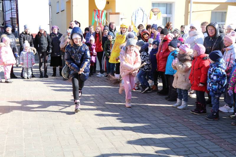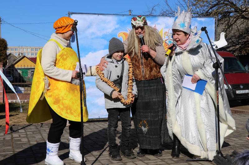 Праздник прощания с Масленицей дружно организовали работники районного центра культуры. Больше всех он пришелся по вкусу детям, которые играли с Зимой (Светланой Ганусевич), Бабой Ягой (Станиславой Томашевич) и ее спутниками – Кикиморой (Валентиной Горид) и Лешим (Геннадием Чаплинским), отгадывали загадки Весны (Алины Кеды), дегустировали блины, приготовленные самой Масленицей (Снежаной Когодовской). Конечно, было много песен в исполнении народного семейного ансамбля “Граўжанцы”, народных ансамблей народной песни “Жытніца” и “Крыніцы”, трио отдела культуры и досуга агрогородка Гольшаны. Ведущими праздника были главные символы Масленицы – Блины — Диана Бенедисюк и Елизавета Сальникова.