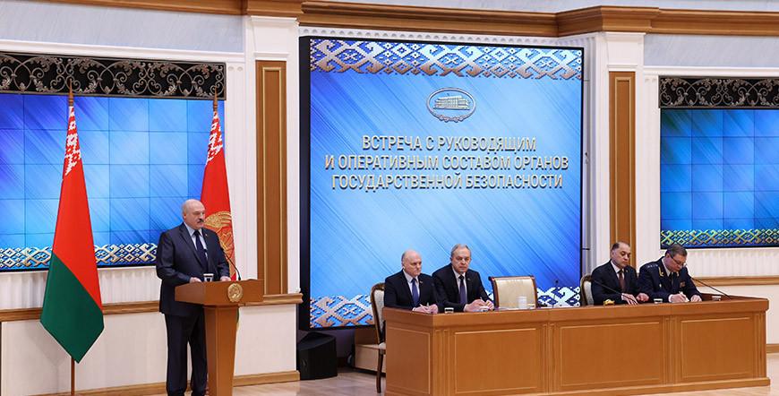 Президент Беларуси Александр Лукашенко на встрече с руководящим и оперативным составом органов государственной безопасности высказался насчет ситуации внутри и вокруг Беларуси, отметил заслуги сотрудников спецслужб в реагировании на имеющиеся вызовы, передает корреспондент БЕЛТА.
