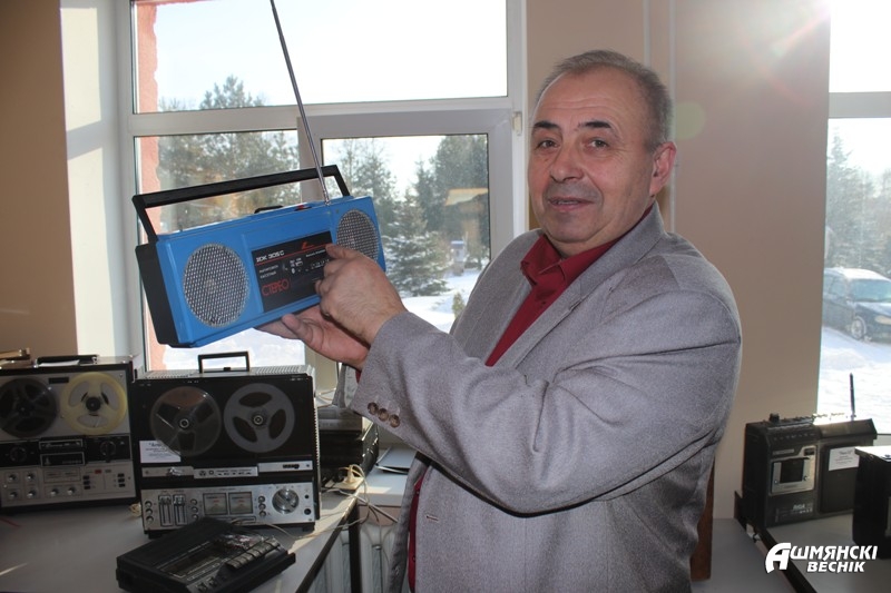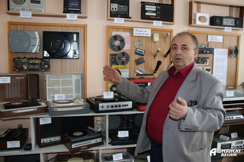 — Музыку я слухаю, як і многія, у якасці фону для іншых спраў. Праўда, люблю прыгожую, якасную музыку, каб прысутнічалі ўсе частоты. Дома стаіць камп’ютар, а таксама дыскавы прайгравальнік. Што тычыцца калекцыі, то тут змяшчаецца толькі малюткая часцінка таго шырачэннага спектра радыёэлектронных прыстасаванняў, якія выпускаліся савецкай прамысловасцю. Зірніце на радыёлы «Мінск Р-7» і «Беларусь-58» пасляваеннага выпуску Мінскага радыёзавода — дыхтоўна, прыгожа, якасна! Такая пакупка тады сапраўды была падзеяй для ўсёй сям’i! Яна ставілася на самым бачным месцы — на этажэрцы або тумбачцы — і зверху накрывалася вязанай сурвэткай. А «радыёкропка» — самае масавае радыё, якое нават электрасілкавання не патрабавала, — вісела на кожнай кухні. З цягам часу мяняўся дызайн апаратуры: памяншаліся памеры, лямпы замяняліся транзістарамі і мікрасхемамі, драўляныя корпусы — пластыкавымі. Новая па тым часе схематэхніка дазваляла атрымліваць больш якаснае гучанне. Усё гэта можна ўбачыць і пачуць у гэтай зале!