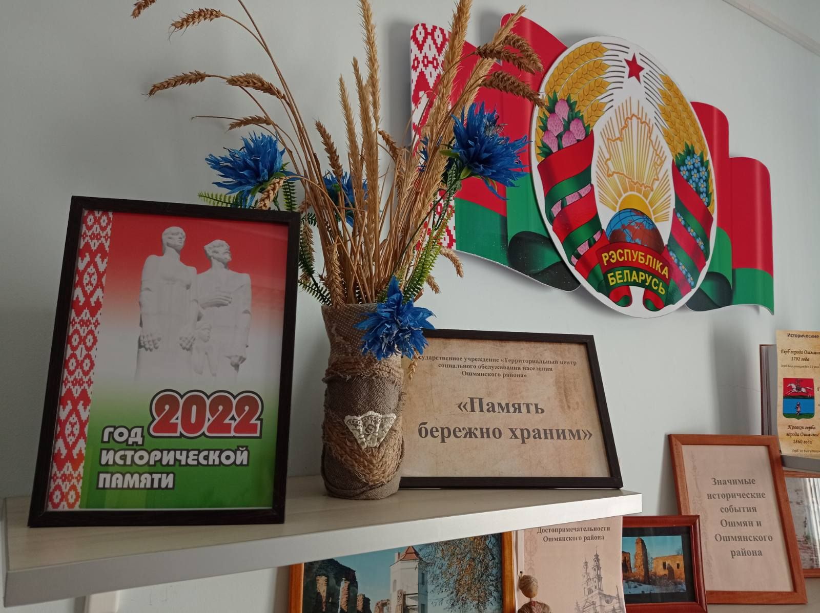Менавіта сёлета тэрытарыяльны цэнтр сацыяльнага абслугоўвання насельніцтва Ашмянскага раёна прымае ўдзел у конкурсе на лепшую выставу, прысвечаную Году гістарычнай памяці. Такія выставы пачалі працу ў ТЦСАН і дамах-інтэрнатах Гродзенскай вобласці ў Дзень Канстытуцыі Рэспублікі Беларусь.