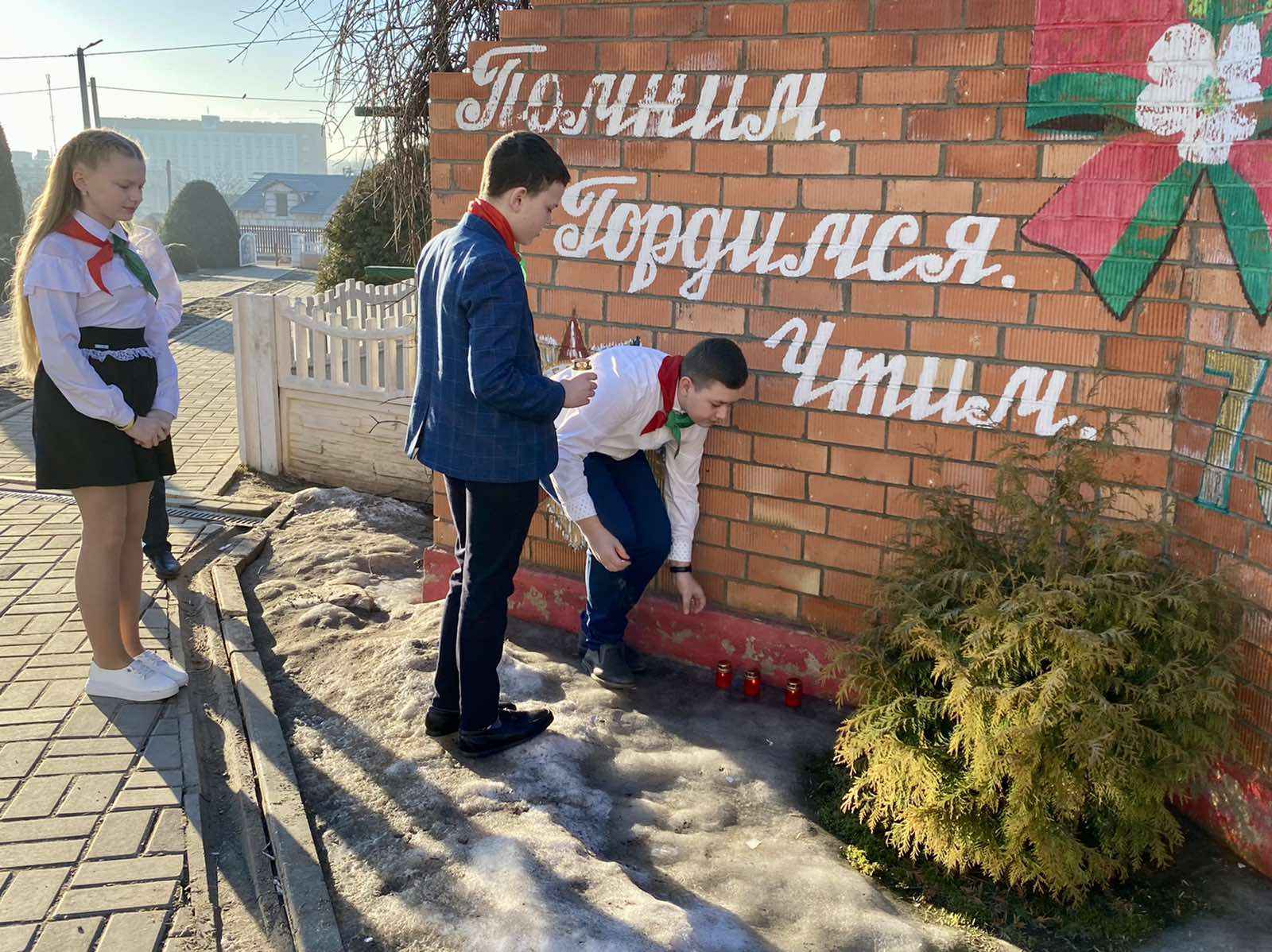 І дарослыя, і дзеці “гарталі” дзясяткі старонак гістарычнай кнігі… На кожнай з іх захаваўся боль і горыч людзей, якія прайшлі дарогамі-шляхамі Вялікай Айчыннай вайны, канцэнтрацыйныя лагеры, агонь Хатыні… Рэхам у актавай зале школы адбіваліся імёны Іосіфа Камінскага, Віктара Жалабковіча, Антона Бараноўскага, Валодзі і Соні Яскевічаў, Сашы Жалабковіча, якія сталі сведкамі і ўдзельнікамі Хатынскай трагедыі. Ашмянцы запалілі лампадкі і хвілінай маўчання ўшанавалі памяць загінуўшых ад рук фашысцкіх захопнікаў жыхароў спаленых вёсак.