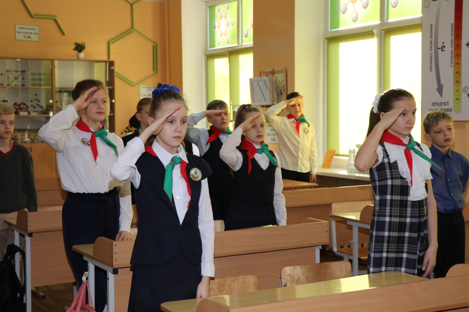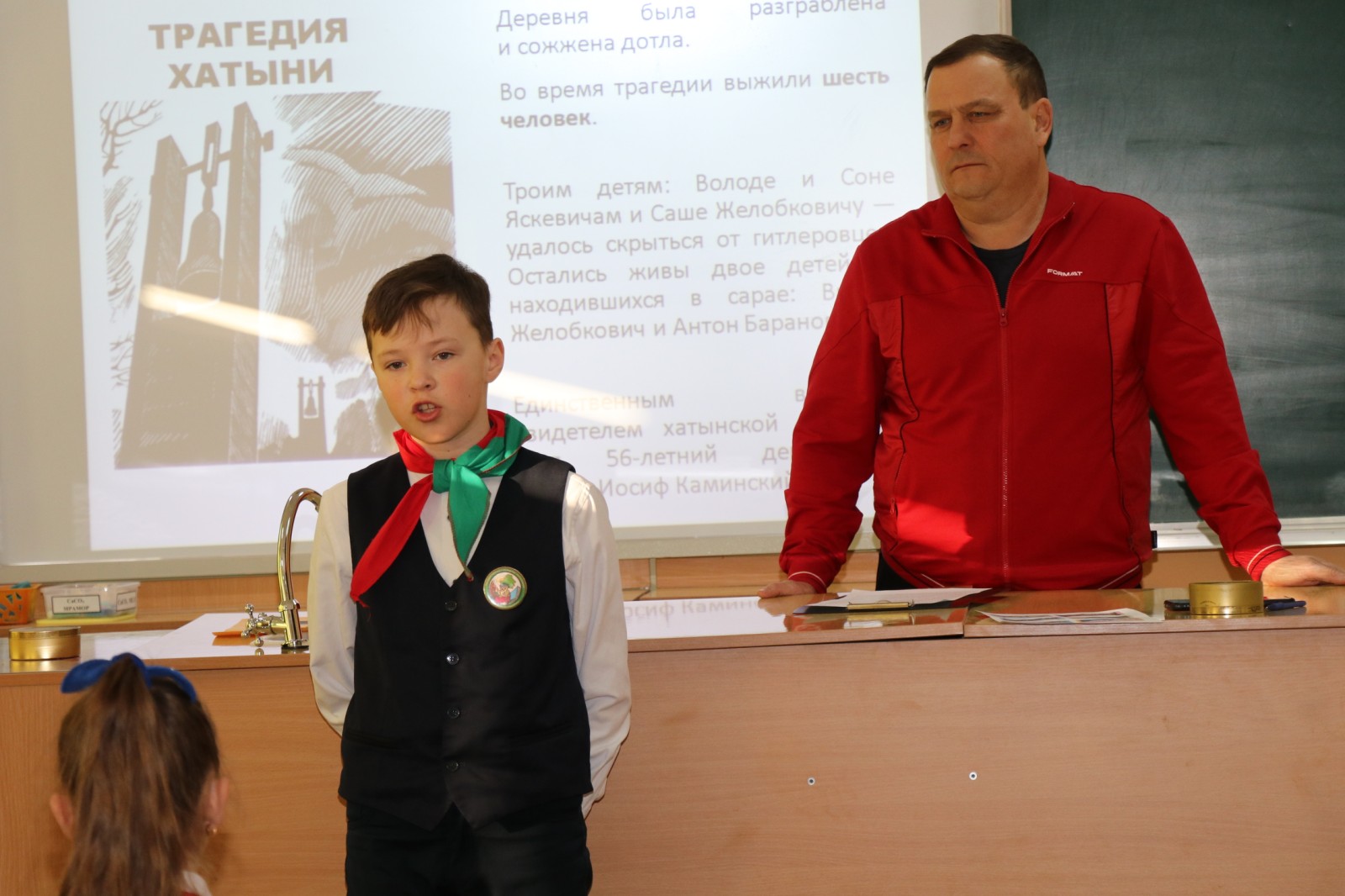 Ученики 5 «А» класса вместе со своим руководителем Ольгой Винцковской говорили о страшной истории, читали стихи о сгоревшей деревне и делились своими впечатлениями от посещения мемориального комплекса «Хатынь». Память погибших школьники почтили минутой молчания.