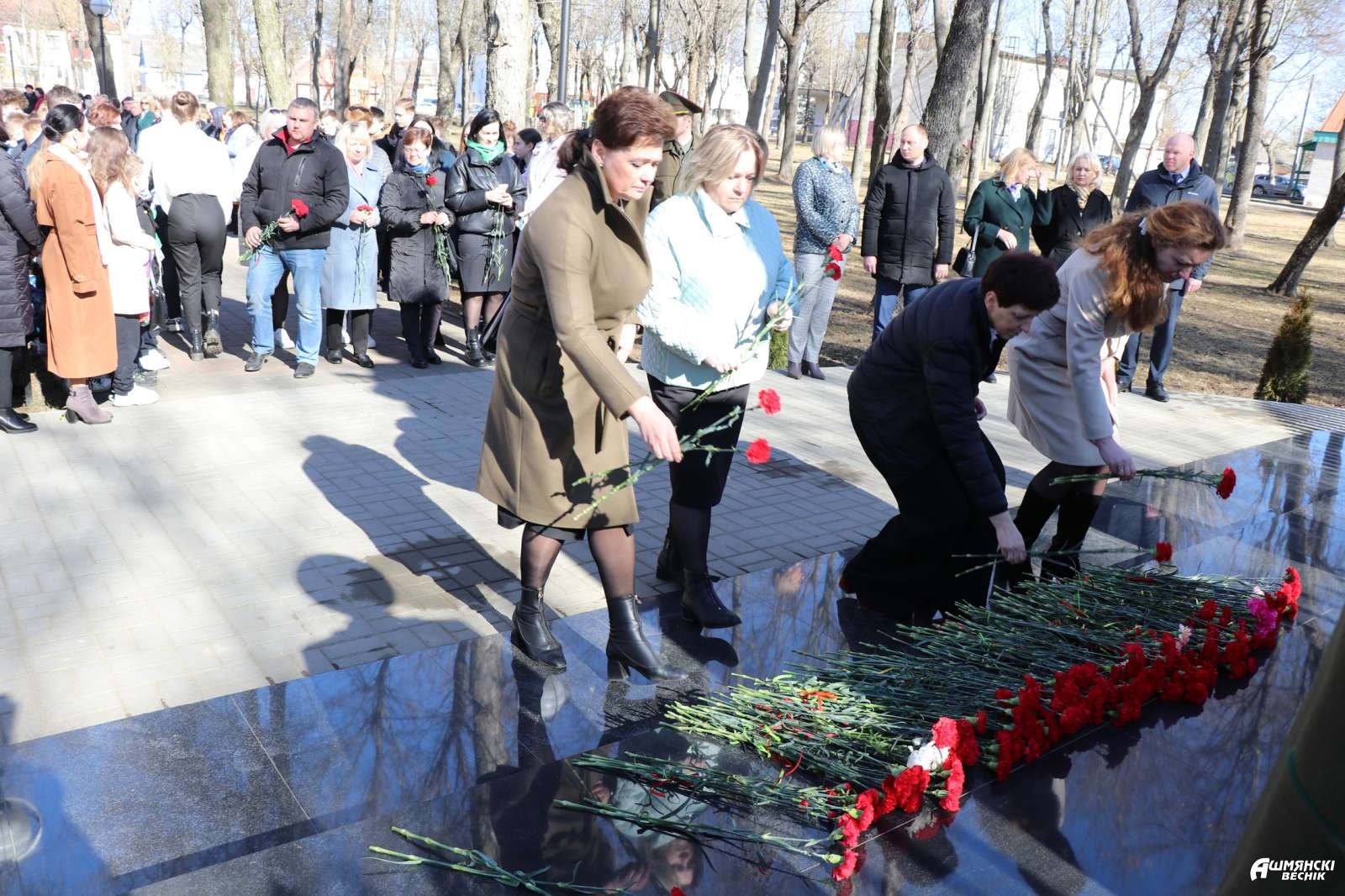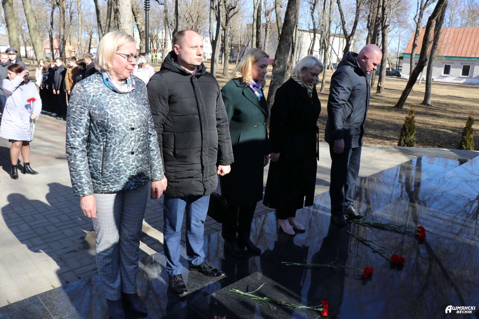 — В истории каждого народа есть события, которые не подлежат забвению. Трагедия Хатыни и тысячи деревень и городов с такой же судьбой — это неутихающая боль в сердцах белорусов, всех советских людей. Эта правда жестока и тяжела, — отметила заместитель председателя Ошмянского райисполкома Наталья Станкевич. — За годы войны ошмянская земля тоже понесла большой урон. Были уничтожены полностью или частично 8 деревень, расстреляно 1793 мирных жителя, 325 наших земляков не вернулись с войны. В память о погибших мы приходим к вечному огню, братским могилам, памятникам воинской славы, на которых высечены имена погибших в боях, плену, умерших от ран.