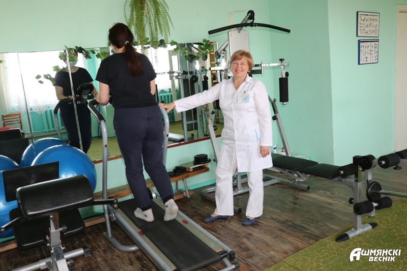 По приезде Ольга устроилась работать на молочную кухню, которая располагалась рядом со зданием районной больницы по улице Советской. А как только была сдана новая больница, и там освободилось место, перешла в отделение медицинской реабилитации. Здесь Ольга Юрьевна, инструктор по лечебной физической культуре, работает и сегодня: вместе со своими коллегами помогает ошмянцам устранять последствия перенесенных заболеваний и продолжать жить полноценной жизнью.