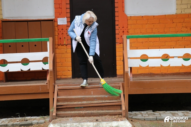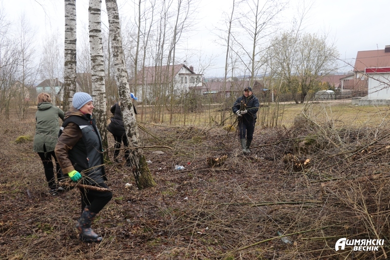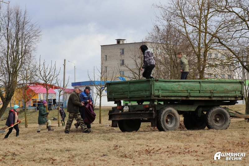 Настаўнікі і тэхнічны персанал СШ №1 бялілі дрэвы на алеі, што вядзе ад фізкультурна-аздараўленчага комплексу да маста праз Ашмянку. На сваіх тэрыторыях завіхаліся калектывы школ і дзіцячых садкоў. У паркавай зоне ля возера ў квартале Будаўнікоў прыбіралі вучні, настаўнікі і тэхнічныя работнікі СШ №2. Апалае лісце і галлё адразу ж грузілася на трактар РУП ЖКГ.