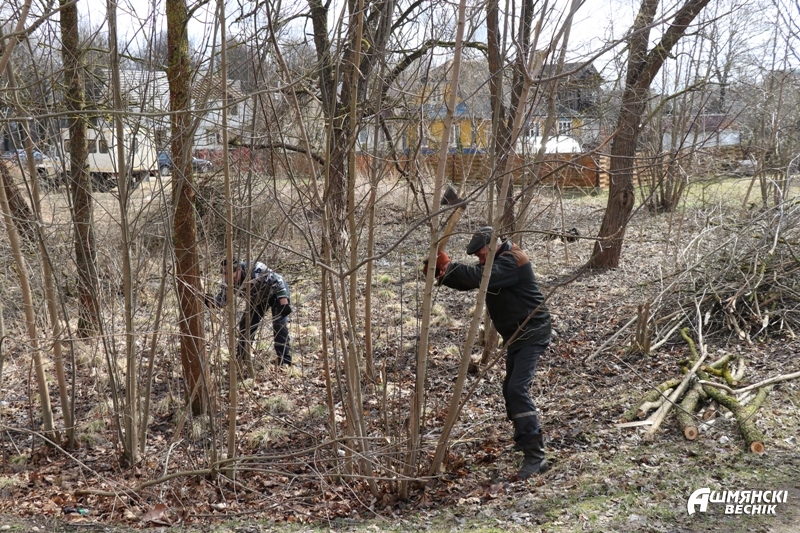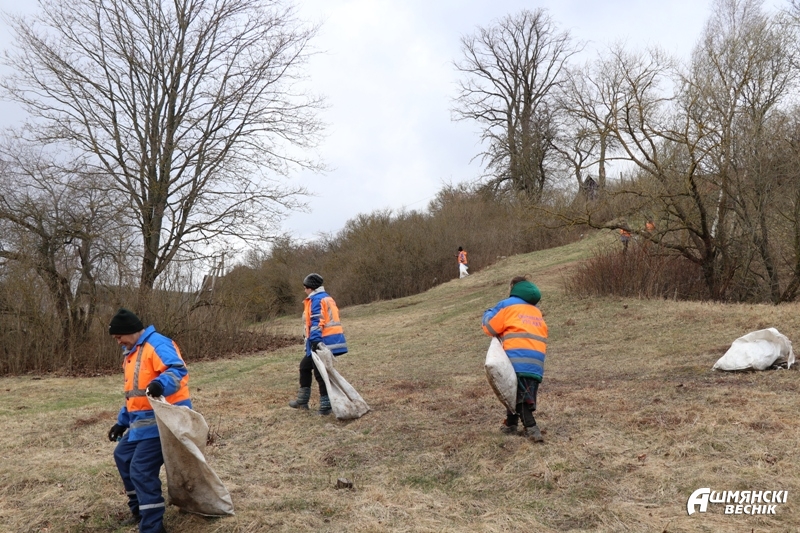 На працягу тыдня работнікі РУП ЖКГ працавалі на ўчастку за вуліцай Савецкай ўздоўж ракі Ашмянкі побач з мікрараёнам Заходнім ажно да вуліцы Лейбы Стругача. Мужчыны выразалі, а затым спальвалі зараснікі кустоў, а жанчыны збіралі смецце на тэрыторыі, прылеглай да крынічкі.