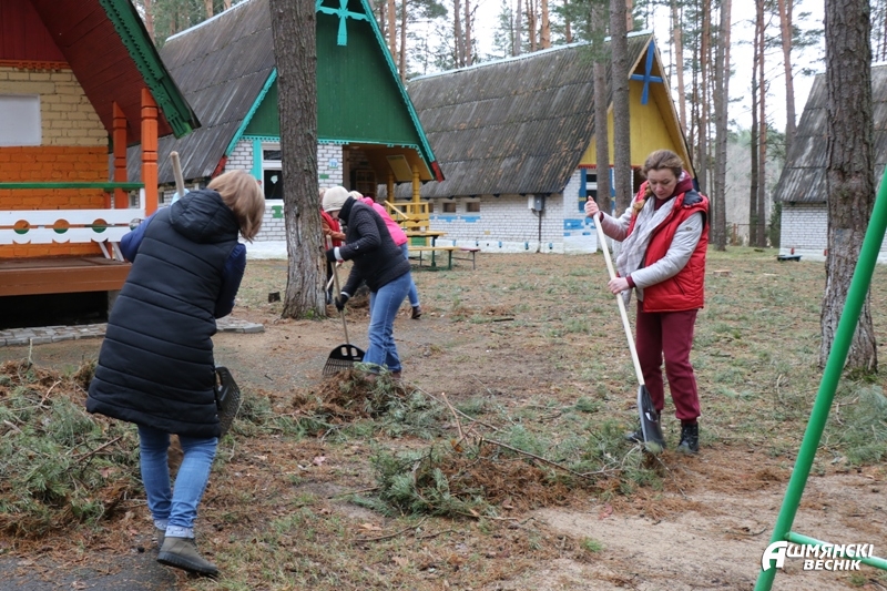 Члены райвыканкама на чале з кіраўніком раёна Уладзіславам Гершгорыным адправіліся ў суботу ў дзіцячы аздараўленчы лагер “Дружба”, што ў Замасцянах. На вялікай тэрыторыі дзіцячай установы неабходна было падгрэбці ігліцу і наламанае за зіму вецце, а таксама дэмантаваць і вывезці старую тратуарную плітку ля спальных домікаў. У хуткім часе тут будуць пакладзены новыя дарожкі.