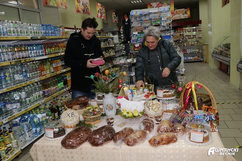 Продукты питания к пасхальному столу — куличи и не только — в широком ассортименте предоставлены в палатке Ошмянского филиала Гродненского облпотребобщества. К слову, практически во всех торговых объектах района обустроены и работают так называемые «пасхальные уголки».