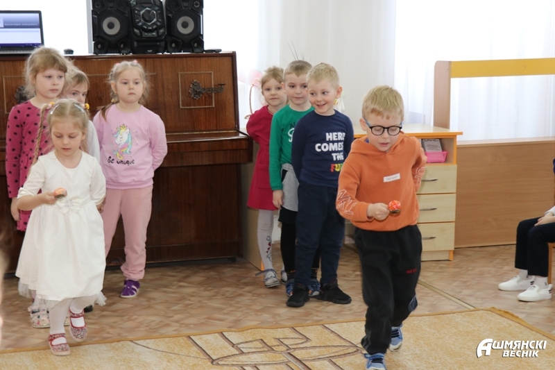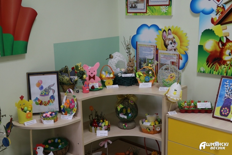 Одно из таких мероприятий накануне Пасхи прошло в яслях-саду № 4 г. Ошмяны. На протяжении целой недели с детьми проводились тематические игры и занятия, готовились выставки, которые разместились не только в каждой группе, но и в фойе первого этажа. Яйца из ниток, бумаги, пластика, других подручных материалов, разных размеров и по-разному раскрашенных расположились во всевозможных корзинках, на блюдах, украсили ветки вербы, составили композиции. Поделки делались родителями и детьми вместе, объединяя и сплачивая общим делом семьи.