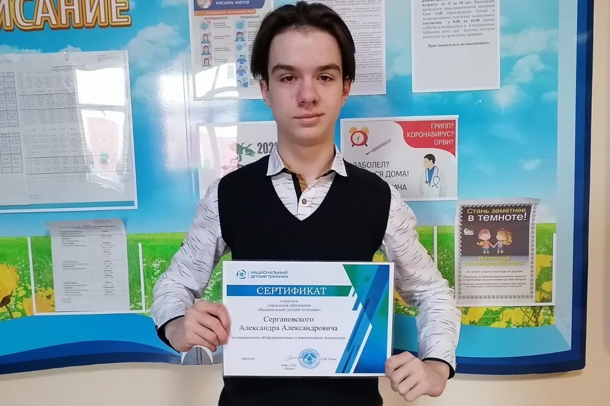 — Подать заявку в Национальный детский технопарк мне предложила директор гимназии. Для того чтобы поступить в него, необходимо было подать заявку, отправив научно-исследовательскую работу. В итоге меня пригласили принять участие во втором и третьем отборочных этапах в г.Гродно на февральскую смену. После теста и собеседования попасть в технопарк с первого раза мне не удалось. Однако я тут же отправил заявку на мартовскую смену. На этот раз удача улыбнулась и мне. Зайдя на сайт технопарка, я увидел себя в списке зачисленных учащихся. Еще большим был восторг, когда я узнал, что попал на направление «Информационные и компьютерные технологии». Так что главное ставить цели и добиваться их.