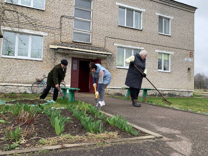 Мужчины и женщины, жильцы частных и многоквартирных домов, очистили территорию от прошлогодней листвы, обрезали кустарник, разбили клумбы для посадки цветов, словом, сделали все от них зависящее для красоты и уюта улиц родной деревни.