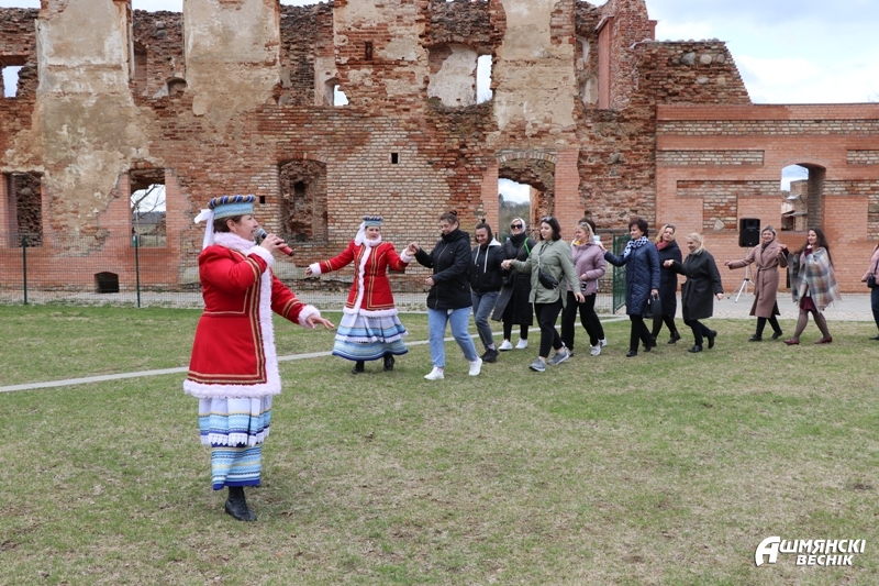 Особый интерес делегации вызвало посещение Ошмянского района. У стен гольшанского замка гостей встречали мелодичными композициями участники народного ансамбля народной песни «Жытніца», директор Ошмянского краеведческого музея имени Ф. Богушевича Елена Жесткова и научный сотрудник Ирина Буслович, заведующая филиалом “Гольшанский замок” Татьяна Рапецкая.