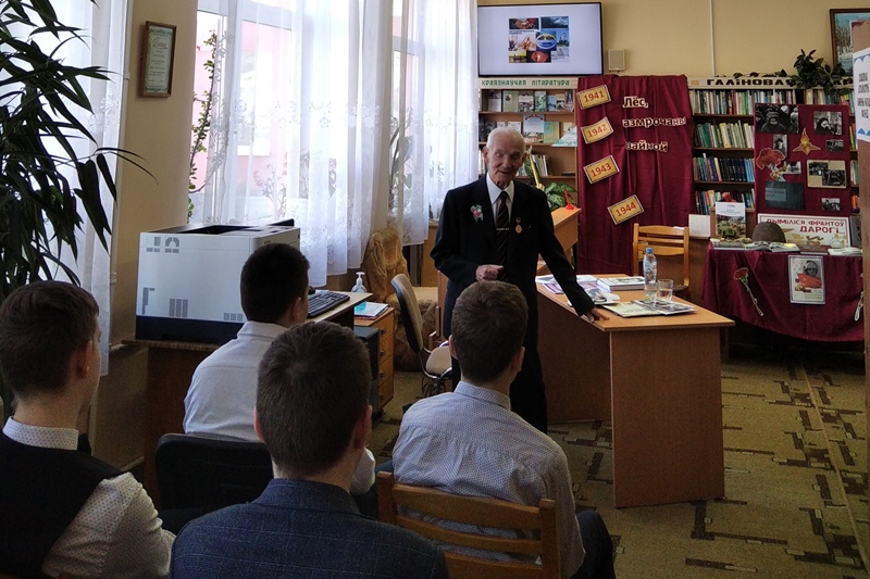 Атрымалася шчырая размова прадстаўніка сталага пакалення з юнымі ашмянцамі. Уладзімір Васільевіч расказаў пра сваё дзяцінства, апаленае вайной, пра выхаванне павагі да гераічнага мінулага нашай краіны на аснове павагі да гісторыі дзяржавы і памяці абаронцаў Радзімы – нашых землякоў. Моладзь доўга не адпускала Уладзіміра Васільевіча, разам яны разглядвалі здымкі, слухалі яго слушныя парады.