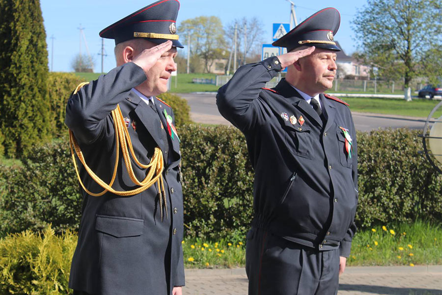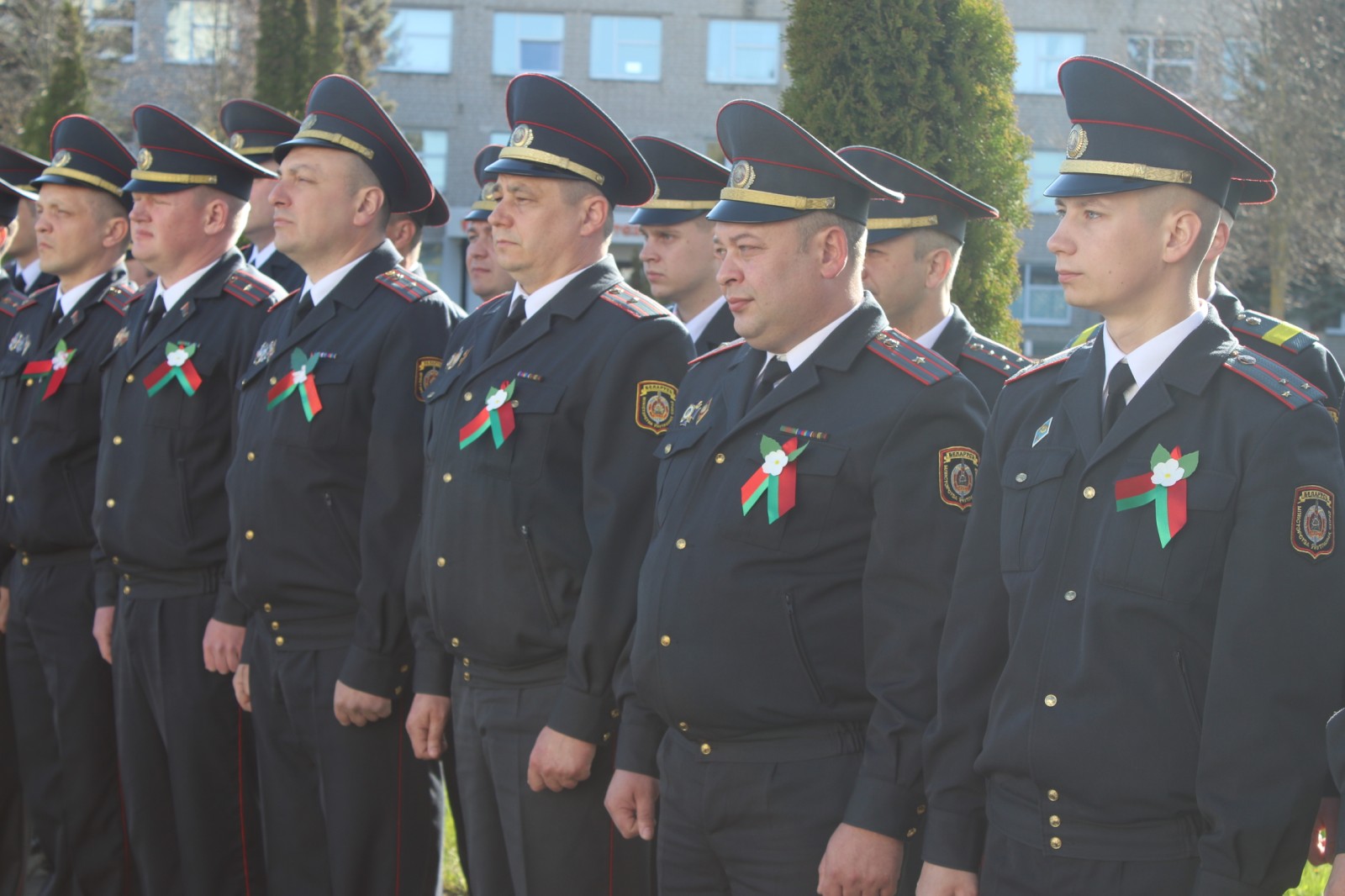 На торжественном построении принимал поздравления старший инспектор по разрешительной работе отдела охраны правопорядка и профилактики Андрей Стельмах – приказом Министра внутренних дел он награжден знаком МВД «За адзнаку». Памятный знак «Участник ликвидации аварии на ЧАЭС» вручен ветерану органов внутренних дел Леониду Гайдановичу. Очередное специальное звание присвоено милиционеру-водителю группы задержания отдела Департамента охраны Виктору Павлюковичу.