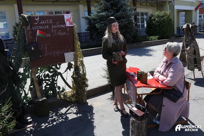 В День Победы широко прошли в Ошмянах праздничные гулянья. В городском парке литературный привал “Вялікая Перамога: памятаем і ганарымся!” подготовили работники районной библиотеки. Кроме книг на военную тему библиотекари предлагали мягкие игрушки, изготовленные собственными руками. Письмо ветерану войны можно было написать на площадке “Полевая почта”, которую подготовили работники участка почтовой связи. Пользовалась популярностью у взрослых и детей выставка-фотозона “Рэха памяці”, организованная краеведческим музеем. На интерактивной площадке “Дорогами Победы” вместе с работниками культуры можно было станцевать победный вальс. Мастер-класс по изготовлению символа Победы – веточки цветущей яблони провели педагоги дополнительного образования центра творчества детей и молодежи. Привлекала внимание интерактивная площадка “Школа в годы Великой Отечественной войны”. О том, как работали в военных условиях врачи, показали и рассказали медработники районной больницы: их площадка была самой востребованной.